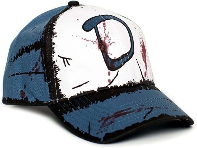 Famous by Walking Dead Video Games, this custom Clementine hat with walker blood and southern dirt. Every puzzle piece is different, and blood and dust are applied manually, so you're bound to have some variation.