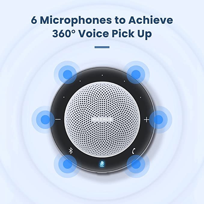 Enther&MAXHUB Bluetooth Speaker, USB Conference Speaker with 6 Microphones, Enhanced 360° Voice Pickup and Noise Reduction, 16ft Pickup Distance, Home Office