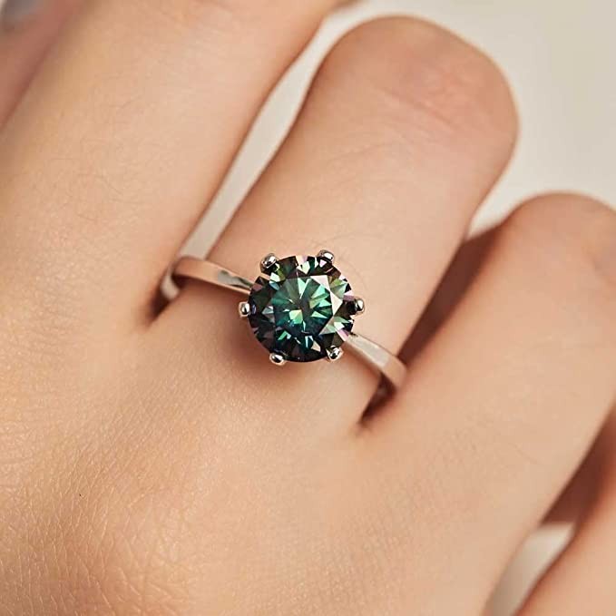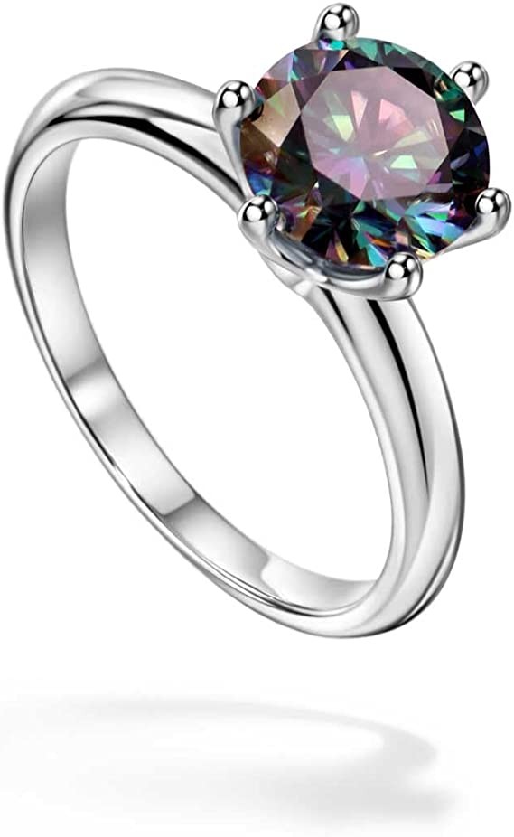 Michooyel 925 Sterling Silver 2 Carat Rainbow Moissanite Diamond Solitaire Engagement Ring VVS Diamond Rings Bridal Wedding Rings Womens
