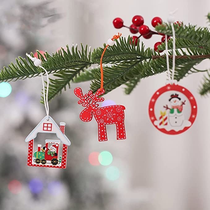 Color:Red and white 24 Pcs 24 Pcs Wooden Christmas Ornaments Set Wood Christmas Tree Ornaments Kit with Wooden Gift Box Wood Christmas ornaments for Arts and crafts DIY, Craft Wood kit Crafts Christmas Ornaments An ideal Christmas Gift for your kids , family, friends, sister etc. These ornaments are made of natural wood, crafted with care, lightweight, and beautiful. Each hanging decoration also works as a fantastic background photo prop at parties. Applicable scene: shopping mall window, Christmas tree and other Christmas event decoration scenes The package includes: ◆ 6 x Snowman ◆ 6x house ◆ 24 x hanging rope ◆ 6 x snowflakes ◆ 6 x Reindeer