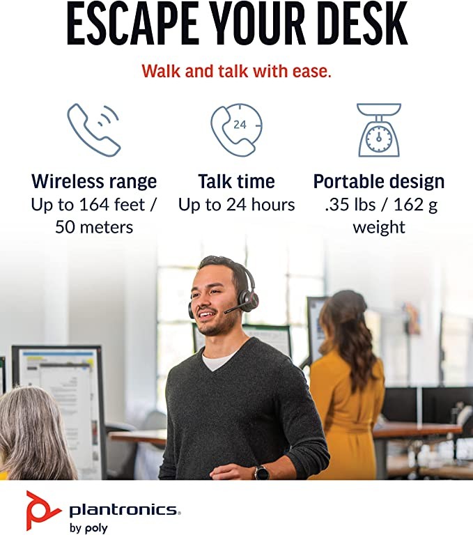 Plantronics Voyager 4320 UC Cordless Headphones + Charging Station (Poly) - Stereo Headphones, Noise-Cancelling Microphone, Long Battery Life, Bluetooth Connectivity PC/Mac/Phone, Team Certified
