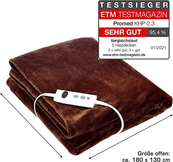 Promed heating blanket KHP-2.3 heating blanket with automatic power off heating blanket XXL size 180 × 130cm 10 temperature grade 1-9 hours running time washable overheat protection