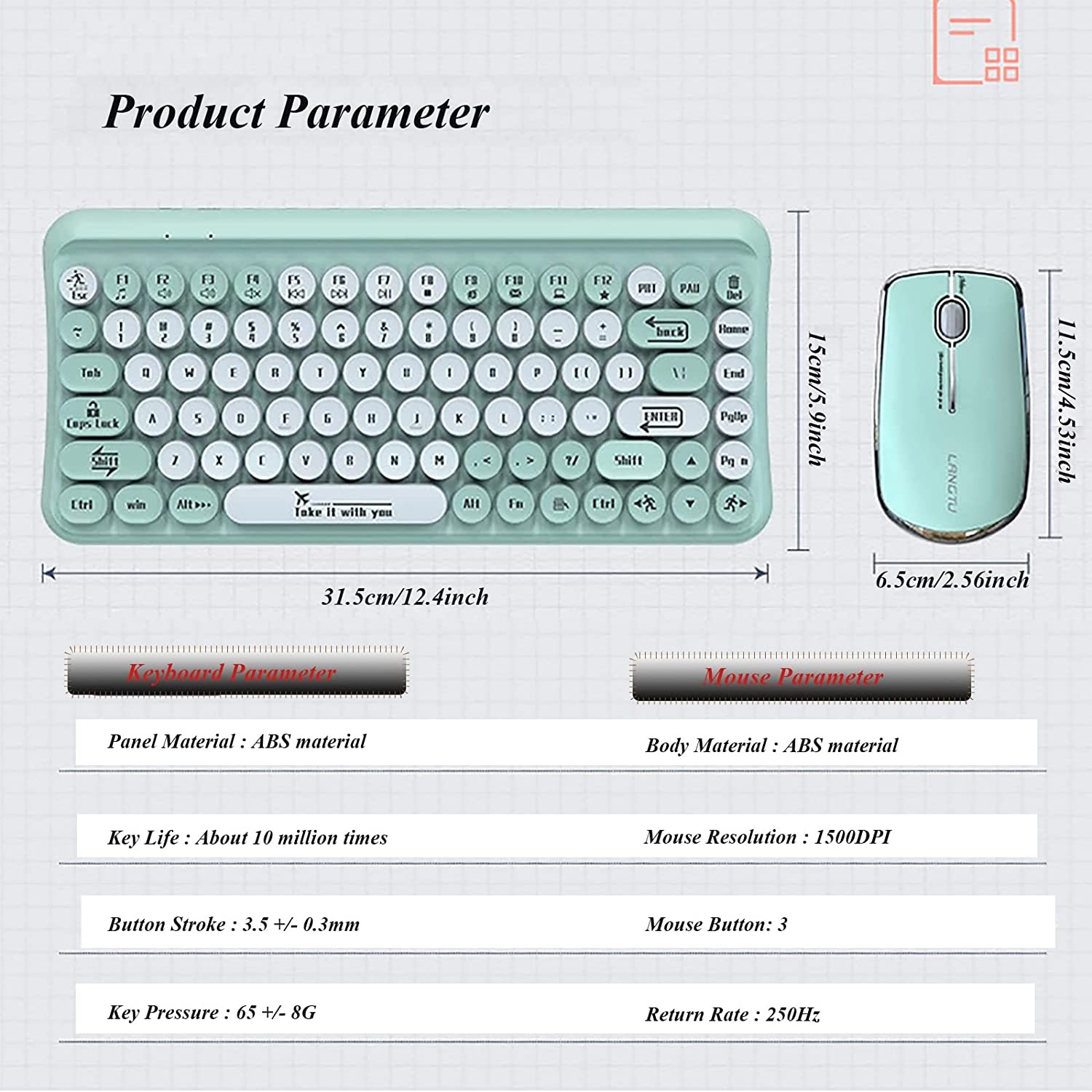 Retro Round Keycaps and Silent Keyboard Mouse - The retro keyboard uses punk round concave keys, which feel delicate and comfortable, and the characters are durable and not faded. The stylish two-color keycaps use noise reduction technology to greatly reduce the sound of keystrokes, creating a quiet and comfortable office environment for you