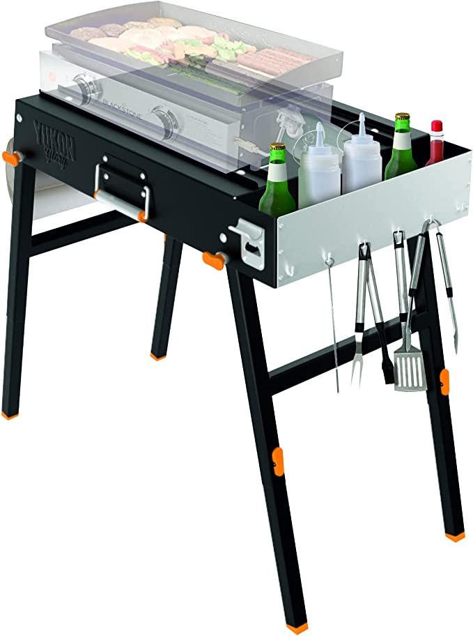 Yukon Glory Universal Portable Grill Table/Flat Top Grill with Built-in Grill - Designed for tabletop blackstone grills and many others - Outdoor cooking camping and tailgating