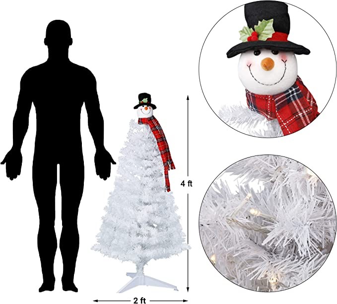 Juegoal 4FT Pre-lit White Artificial Christmas Tree with Snowman Tree Topper