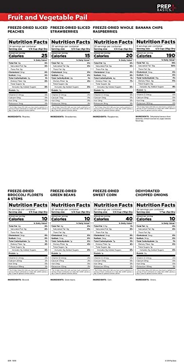 Prep Basics Fruit & Vegetable Assortment | Emergency Food Supplies | Freeze Dried & Dehydrated | Total Calories 4,210g Protein | Up to 30 Years Shelf Life | 8 Ziploc Bags